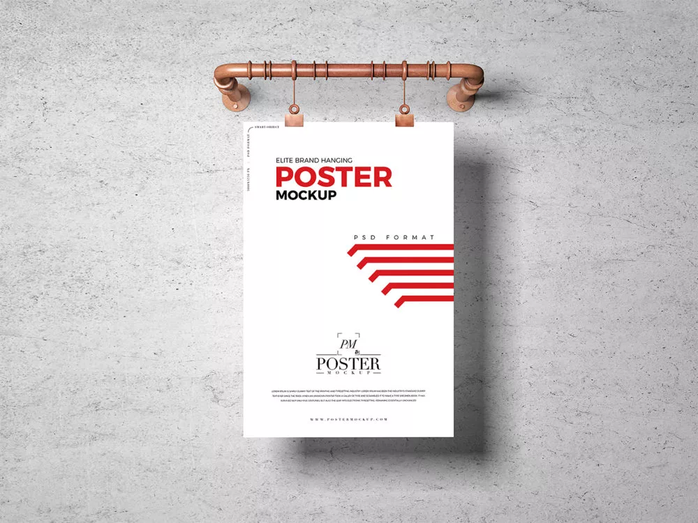 Showcase your poster or artwork design with this Hanging Poster Mockup, featuring a realistic presentation of a poster suspended against a clean background. The subtle shadows, soft lighting, and detailed textures create a polished, professional look – perfect for portfolios, client presentations, or marketing visuals.