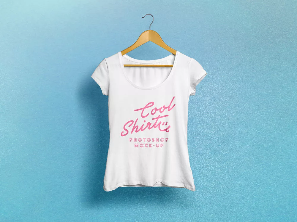 This mockup presents a woman’s t-shirt in a clean, realistic way, making it easy to showcase prints, logos, or patterns on the garment. The natural fit and subtle fabric folds give the shirt a lifelike appearance, helping viewers imagine it as a real product.